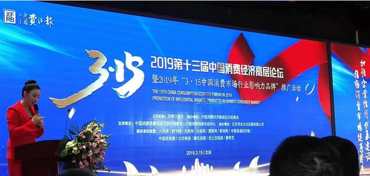 2019年3月15日, 由消費日報舉辦的2019年第十三屆中國消費者經(jīng)濟高層論壇暨2019年3?15中國消費市場影響力品牌峰會在北京舉行。中國輕工業(yè)聯(lián)合會工會主席、黨建人事部副主任等出席峰會,新華社、中新社、人民網(wǎng)、鳳凰視頻、騰訊視頻等500余家媒體參與此次盛會報導(dǎo)。